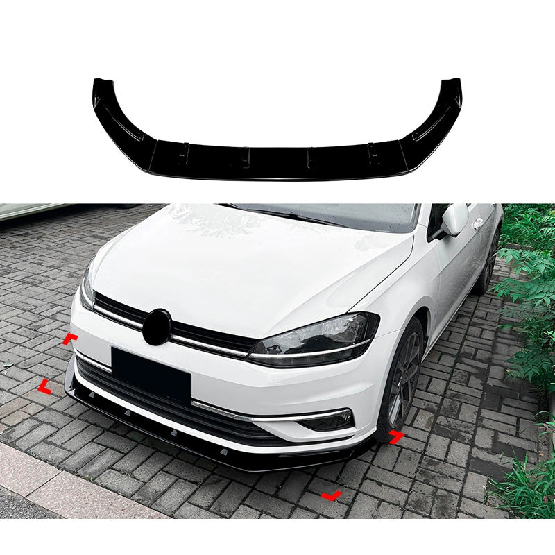 Front spoiler lip suitable for Volkswagen Golf VII (7.5) 2017-2019 excl. GTi/GTD/R/R-Line (Glossy Black ABS)