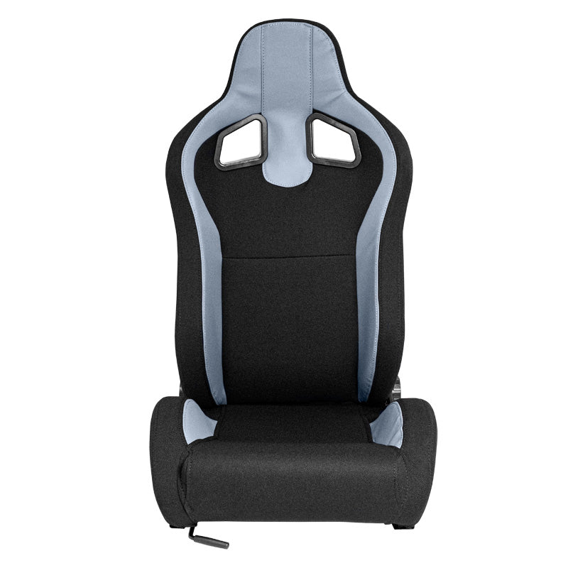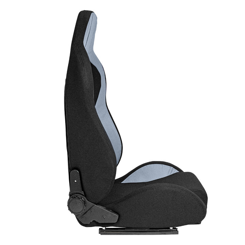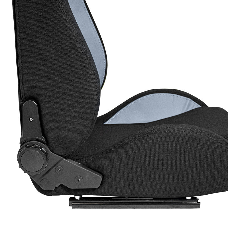AutoStyle, Sportssæde 'MR' - Sort Syntetisk Læder + Grå Fyrrestof - Dobbeltjusterbart Rygstykke - Inkl. Skydeskinner