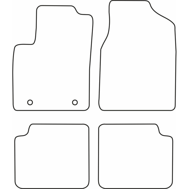 - Optimal design: Måtterne er lavet af høj kvalitet sort velour med en syet kant og har standard fastgørelseshuller, så de nemt kan klipses på plads i din bil. Den granulerede skridsikre bund sikrer, at måtten ikke glider.