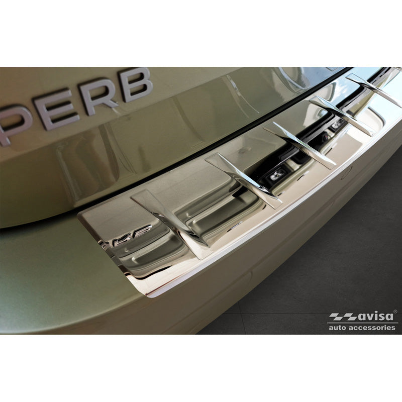 Avisa, Bagkofangerbeskytter, blankpoleret, Rustfritstål, passer til Skoda Superb IV Combi 2023- 'Ribs'