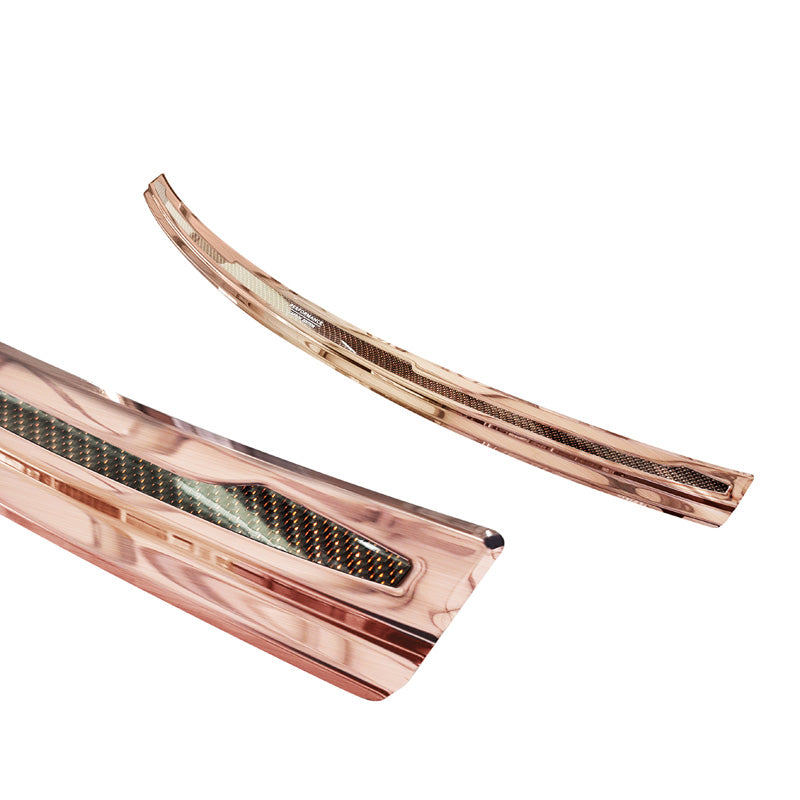 Beskyttelsen er fremstillet af rustfrit stål og kombinerer både funktionalitet og æstetik. Den børstede kobberfinish giver et sporty og elegant udseende, der komplementerer din bils design.