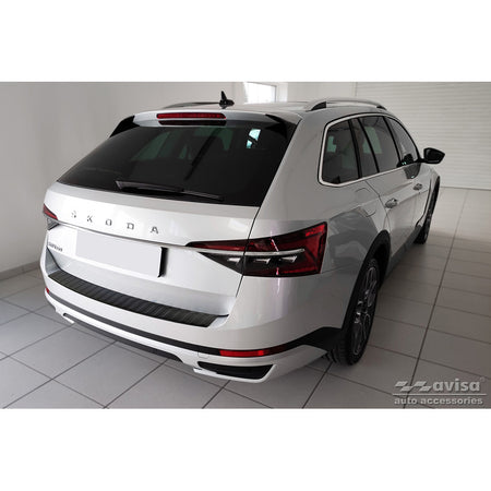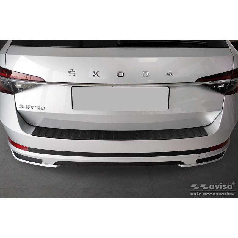 Avisa, Bagkofangerbeskytter, Mat Sort, Rustfritstål, passer til Skoda Superb III Combi 2015-2019 & Facelift 2019-2024 incl. Scout 'Ribs'