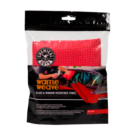 Chemical Guys Waffle Weave Glass & Window Microfiber Towel - Red 24x16''
