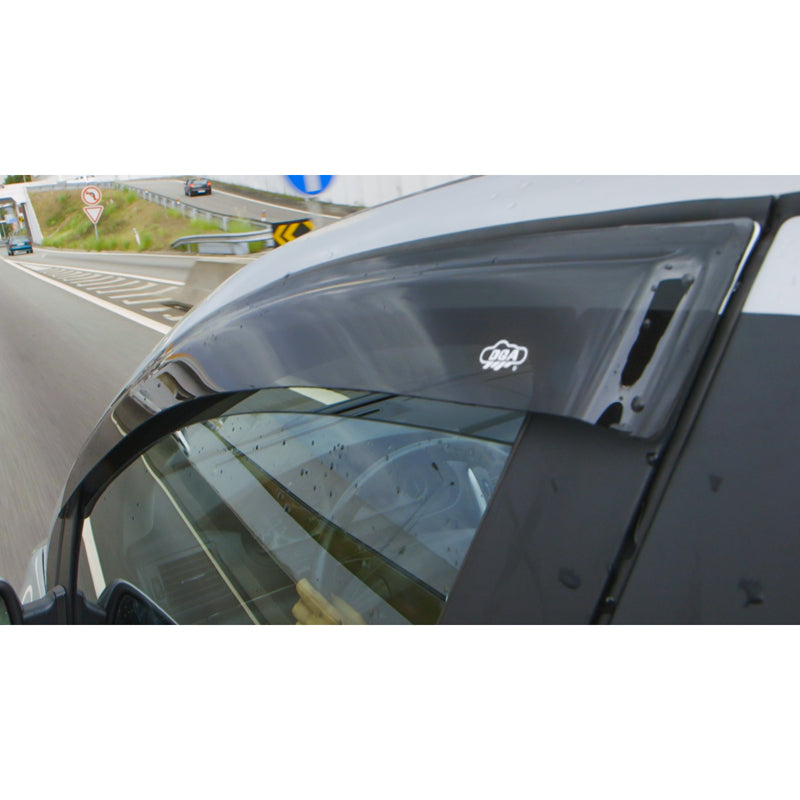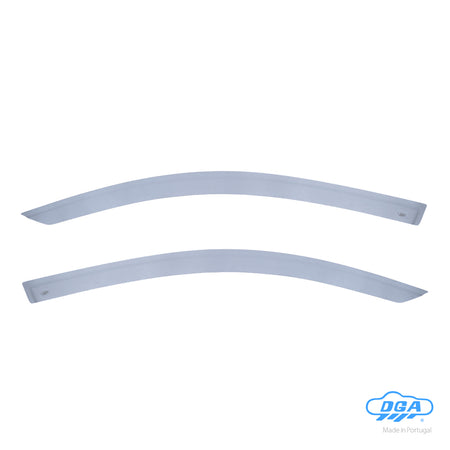 These DGA exterior side deflectors are designed for mounting on the outside of the car door. Thanks to their vehicle-specific shape, they integrate perfectly with the car door/bodywork. This ensures: