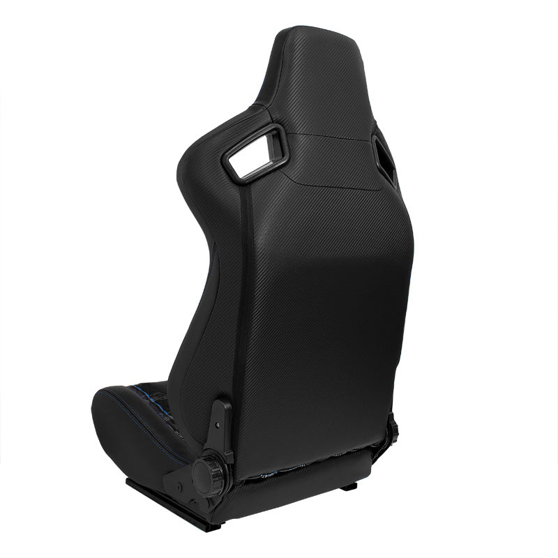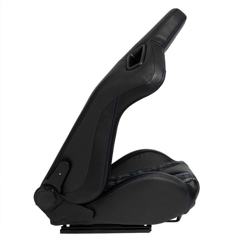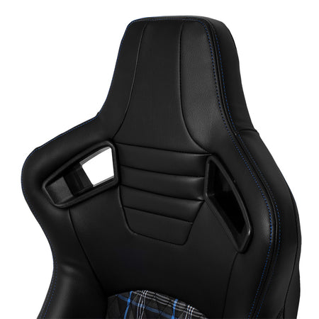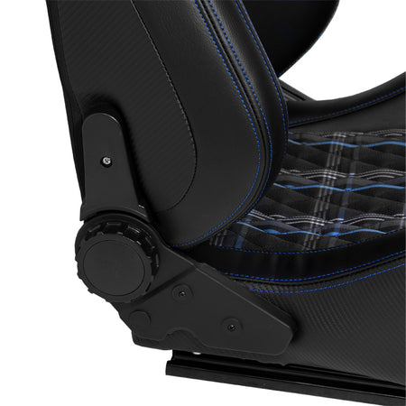 AutoStyle, Sportstol 'GT' - Svart syntetiskt läder + blårutigt tyg - Dubbelt justerbar rygg - Inkl. Skjutskenor