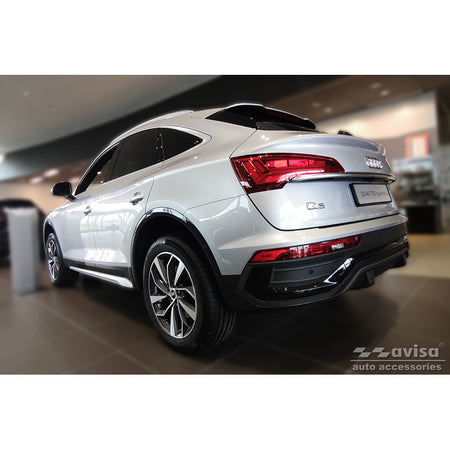 Med Avisas bakre stötfångarskydd får du en effektiv lösning för att skydda din Audi Q5 Sportback 2020- inkl. S-Line mot skador och slitage. Detta skräddarsydda skydd säkerställer att din bil förblir i toppskick, även vid frekvent lastning och lossning.