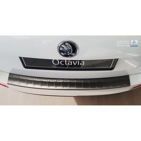 Avisa, Bakre stötfångarskydd, Svart, Rostfritt stål, passar Skoda Octavia III Kombi 2013-2016 'Revben'