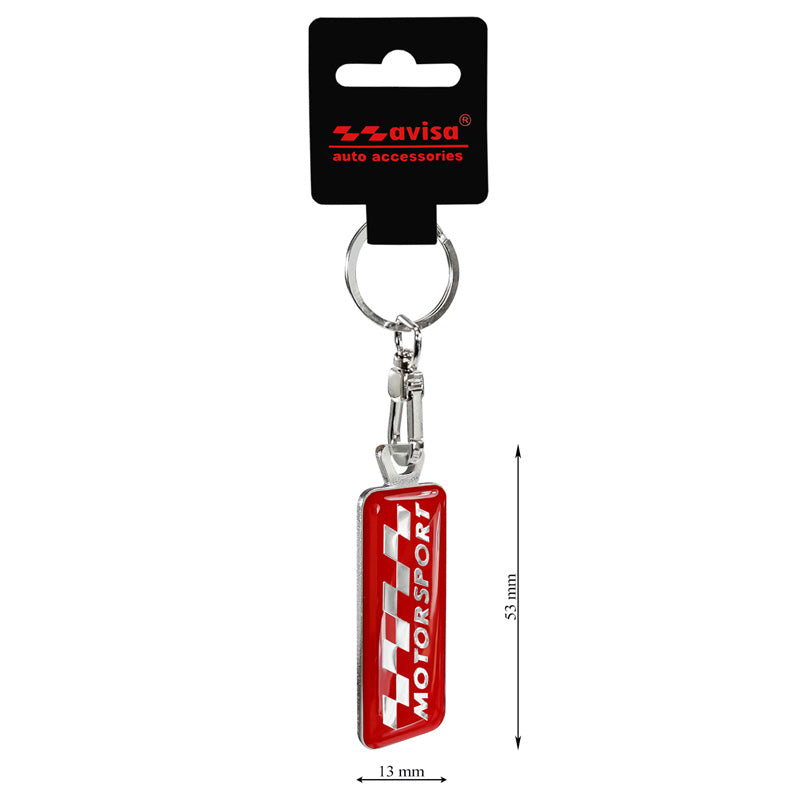 Avisa, nyckelring i rostfritt stål - Motorsport Röd - 1,3x5,3 cm