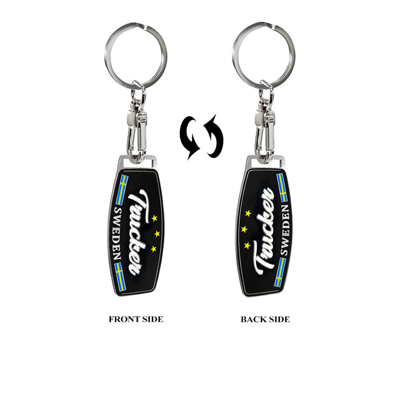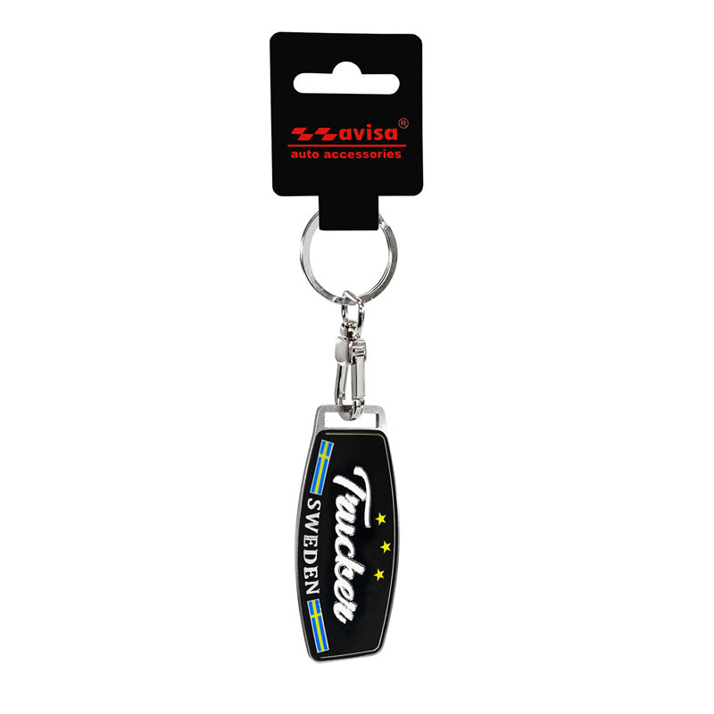 Avisa, Nyckelring i rostfritt stål - Trucker/ Sverige - 6,5 x 2,9 cm