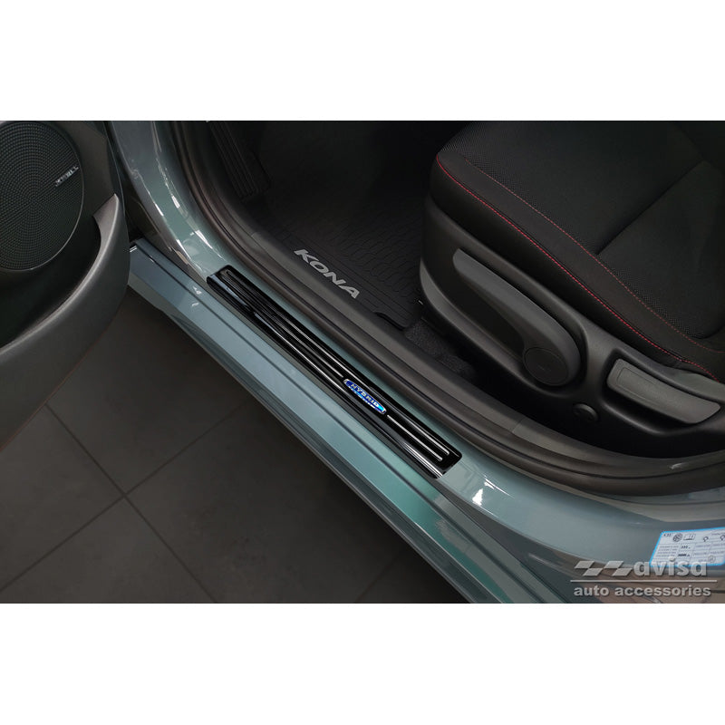 Avisa, Tröskelskydd, Svart, Rostfritt stål, passar Hyundai Kona 2017-2020 & FL 2020-2023 'Hybrid' - 4-delat