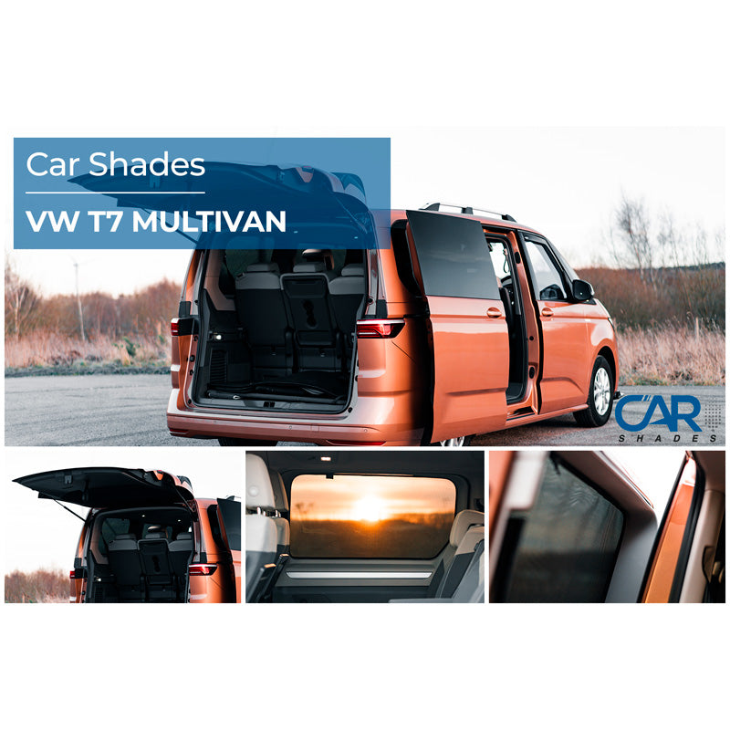 Car Shades, solgardiner (B-stolpe och bak), passar Volkswagen T7 Multivan lång version 2021- (6 delar)