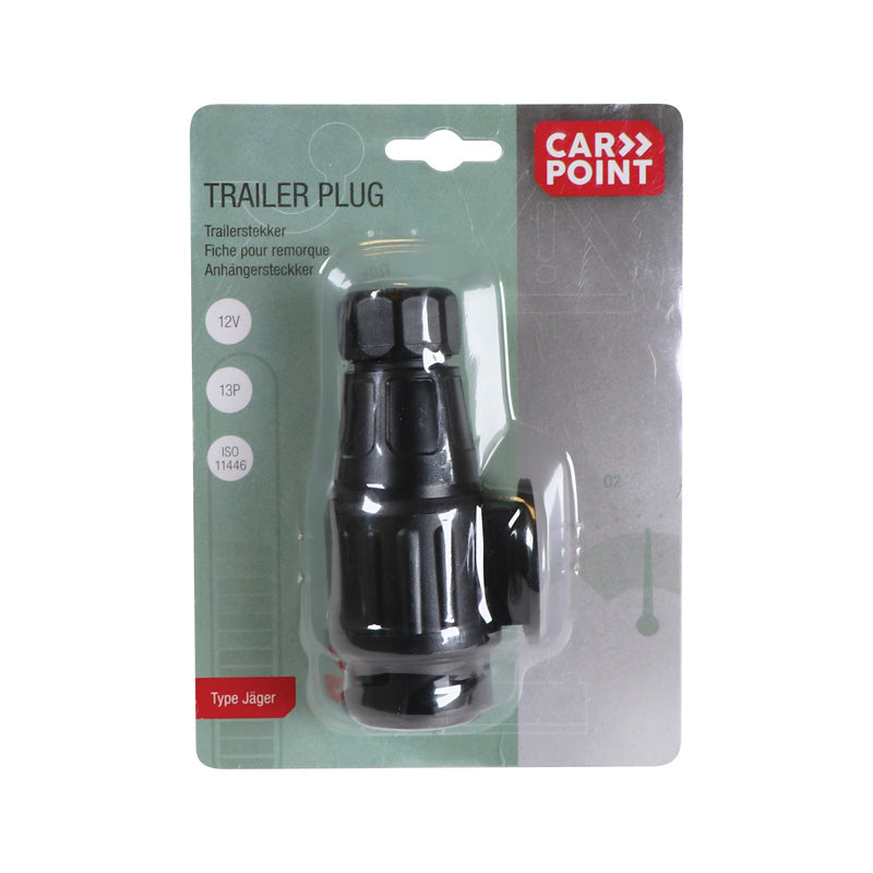 Carpoints 13-poliga Jäger-kontakt är den idealiska lösningen för pålitliga anslutningar mellan din bil och släp eller cykelhållare. Denna kontakt säkerställer att alla grundläggande belysningsfunktioner fungerar korrekt, samtidigt som den erbjuder ytterligare anslutningar för reservljus, bakljus, DC och AC-ström till kylskåpet.