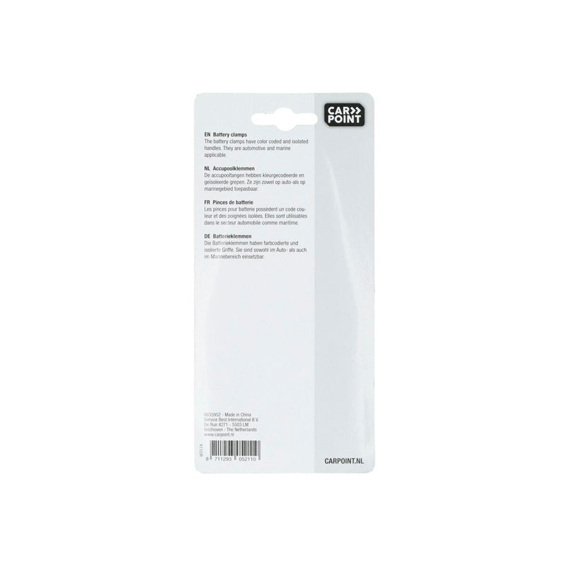 Dessa batteriklämmor från Carpoint är idealiska för både bil- och marinapplikationer. Färgkodade och isolerade handtag gör det enkelt att identifiera plus- och minusterminalerna, vilket säkerställer en säker och effektiv anslutning.