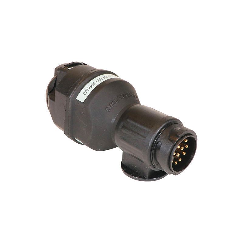 Carpoint Canbus LED Adapter konverterar en 13-stifts anslutning till en 7-stifts anslutning och kommunicerar effektivt med bilens Canbus-system. Den är idealisk för nya fordon som kräver en felfri anslutning.