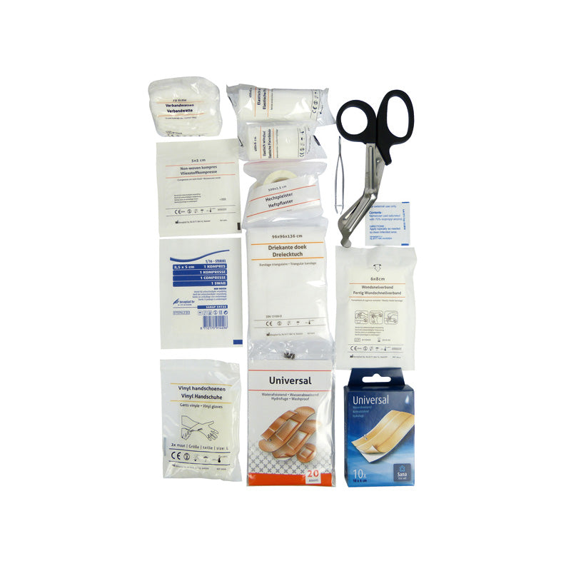 Satsen innehåller 40 viktiga delar, som säkerställer att du är väl rustad att ge första hjälpen i nödsituationer. Den solida lådan mäter 260x170x60 mm vilket gör den enkel att förvara i bilen eller hemma.