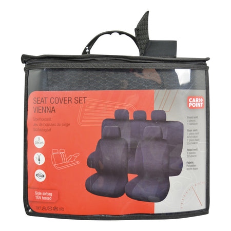 Carpoint, Universal Sätesöverdrag Set - 9 delar - Svart/Grå - Maskintvättbar