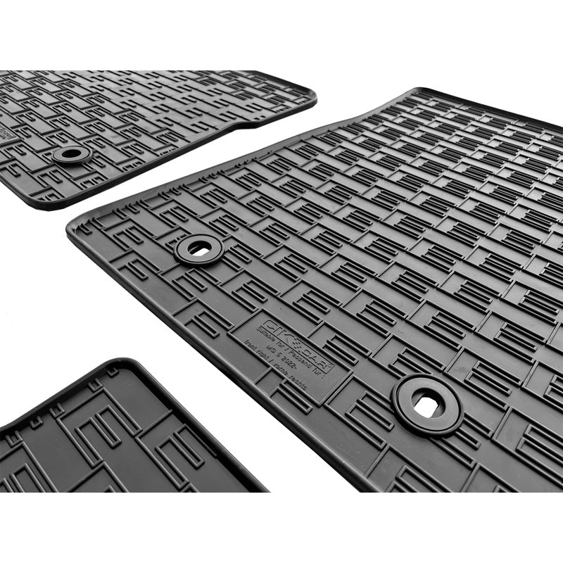 Gummimattorna är tillverkade av högkvalitativt gummi vilket ger en robust och hållbar lösning för att skydda bilens golv. De har originalfästpunkter som säkerställer att mattorna stannar på plats under körning, vilket ökar säkerheten. Den Non-Slipa undersidan förhindrar att mattorna glider runt.