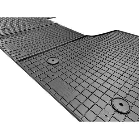 Gummimattorna är utrustade med originalfästpunkter som håller dem säkert på plats, vilket ökar säkerheten under körning. Den halkfria undersidan förhindrar att mattan glider runt, så du kan köra säkert.