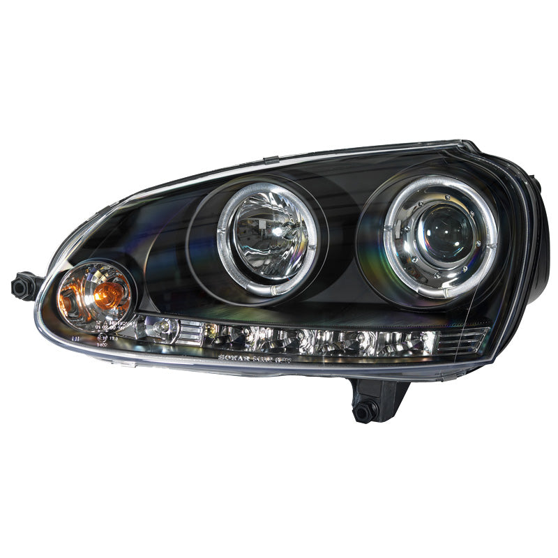 Framlampor, Passar för Volkswagen Golf V 2003-2008 - svarta - inkl. Angel Eyes