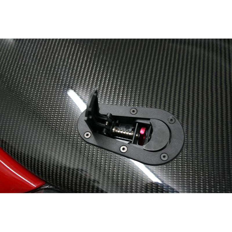Grayston, Set universal Racing Plus Flush motorhuvskrokar/stift + lås - svart + röda aluminiumstift