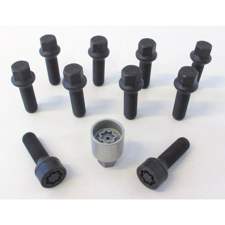 H&R Wheel Bolt Set R14 M14x1.50 är den idealiska lösningen för att säkra dina hjul. Detta kit innehåller 10 bultar, inklusive 2 hjullås och en adapter, vilket gör den perfekt för både säkerhet och funktionalitet. Med en längd på 47 mm och en elegant svart finish passar detta kit många bilmodeller inklusive Mercedes och VW T4.