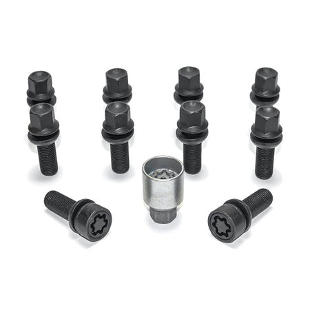 HR, Hjulbultssats Round-Head med rörlig kon R13 M14x1,50 - längd 32mm - Svart - 10 st. (passar t.ex. Audi S5) - inkl. hjullås