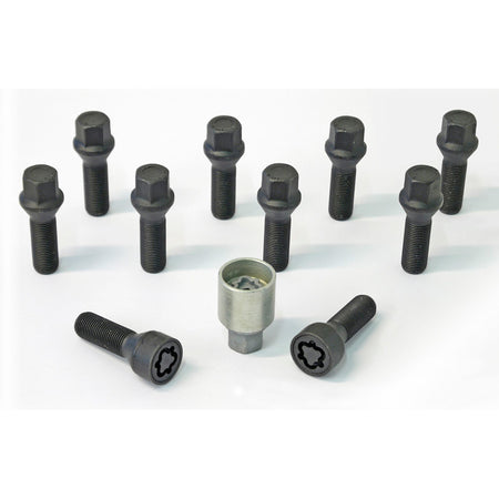 H&R, Hjulbultssats Taper-Head M14x1,50 - längd 38mm - Svart - 10 st. - inkl. hjullås