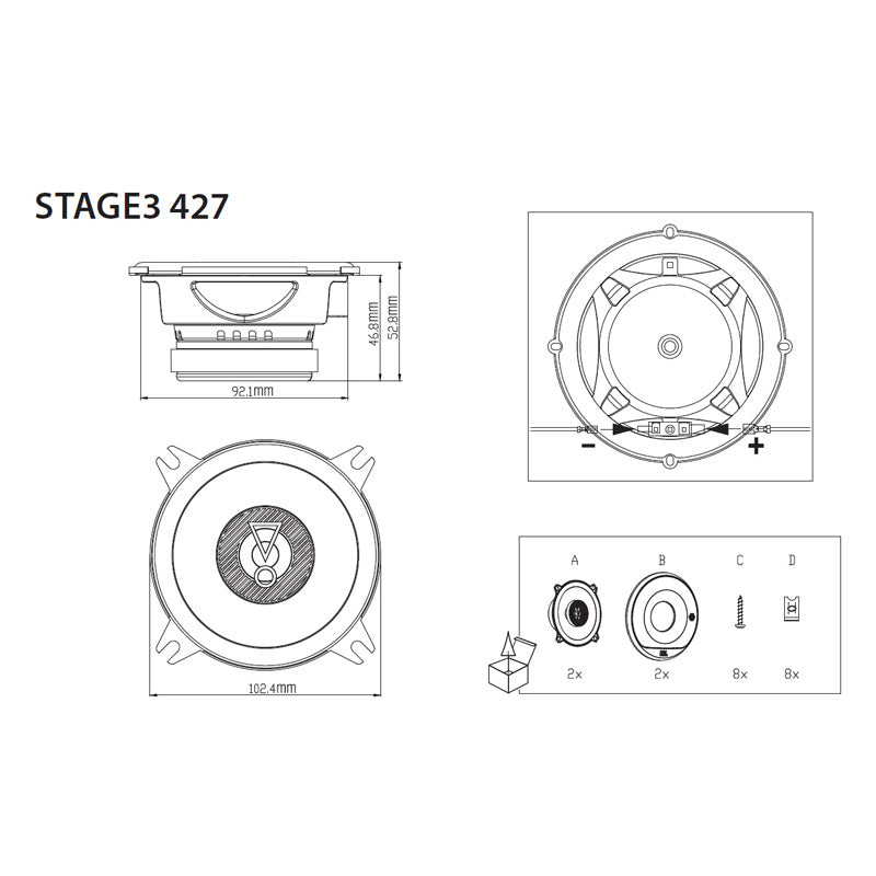 JBL, Stage3 427 10CM Bilhögtalarset - 150W