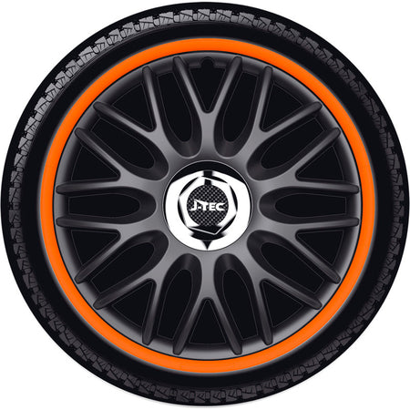 J-Tec, Navkapslar, 4st, Order R 14-tums svart/orange + kromring