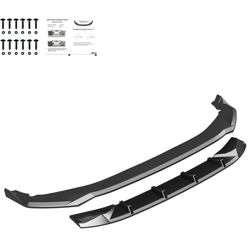 The set includes: front spoiler, rear spoiler, side skirts, diffuser, rear side splitters