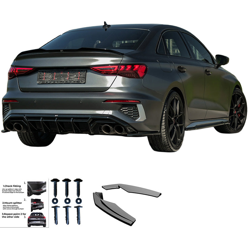 Oneway Rear Side Diffusors suitable for Audi A3 8Y Sedan S3/S-Line 2020-2024 - Gloss black