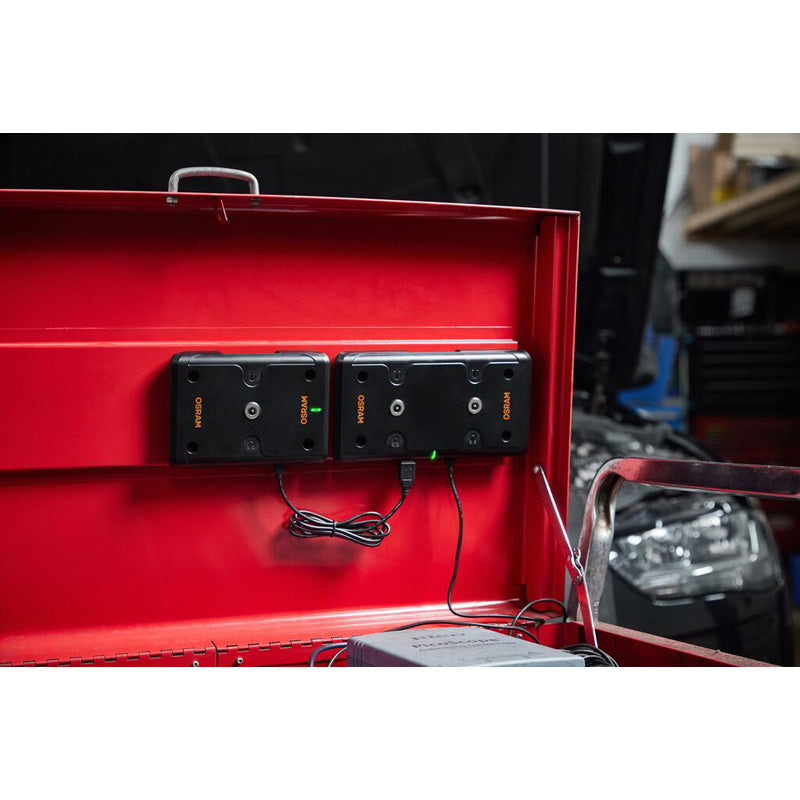 Laddningsplattan är designad för att lagra och ladda två kompatibla inspektionslampor, så att du alltid är redo när det gäller. Med Osrams trådlösa teknik kan du fokusera på arbetet utan avbrott.