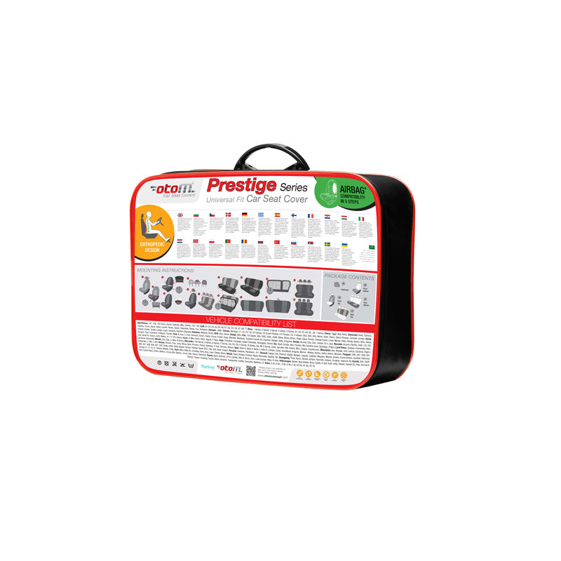 Ge din bil en fräsch och elegant look med otoM Universal Överdragsklädsel 'Prestige' i svart/grårutig design. Detta kit är inte bara en estetisk uppgradering, utan också en praktisk lösning för att skydda dina säten från slitage. Med kompatibilitet för sidokrockkuddar kan du vara säker på att säkerheten inte äventyras. Specifikationer:- Färg: Svart/Grå Rutig