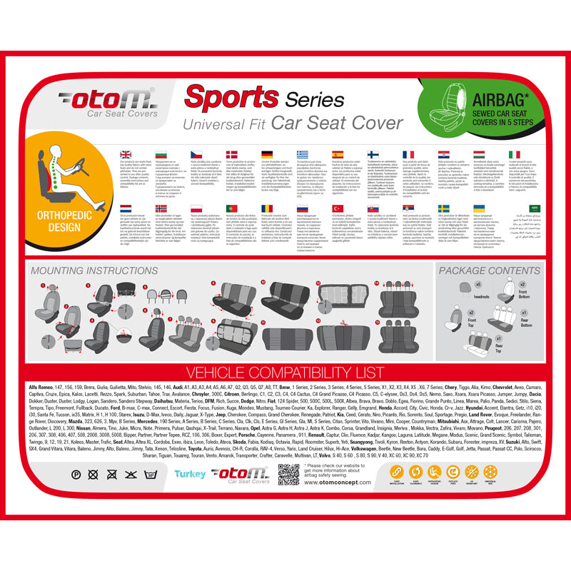 otoM, Universal Överdragsklädsel 'Sports' - Svart/Grå/Röd - 11 delar - Sidoairbag kompatibel