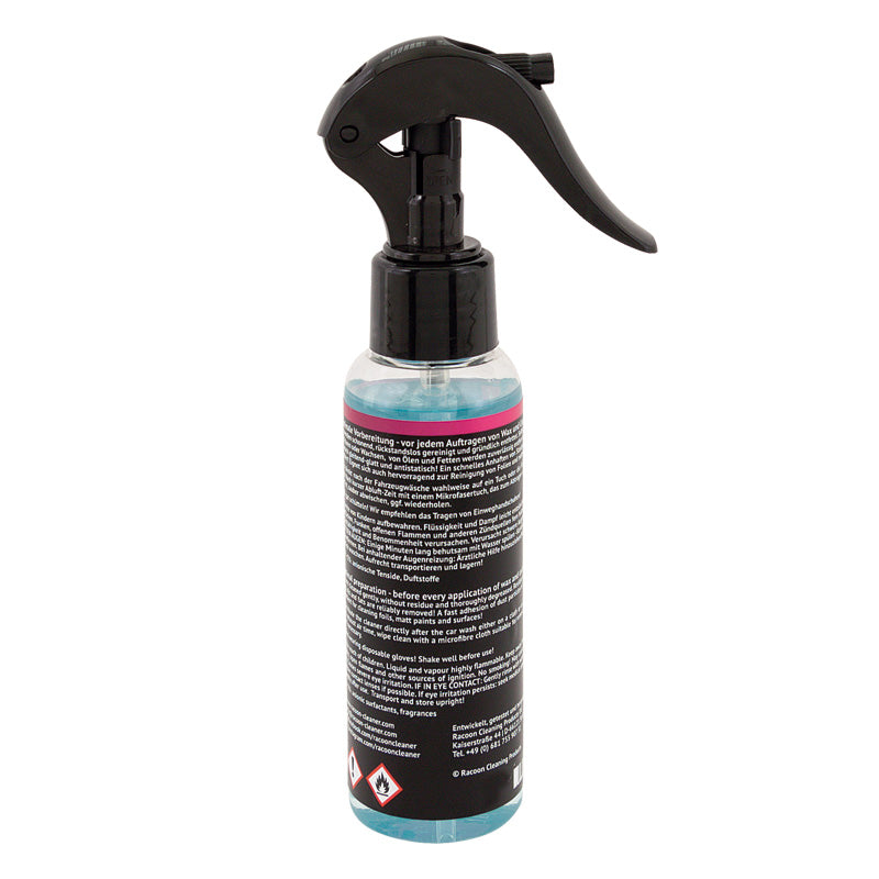 Med Racoon Alcoholic får du inte bara en grundlig avfettning, utan även en antistatisk effekt som förhindrar dammpartiklar från att fastna. Detta gör att nya beläggningar har bättre vidhäftning, vilket förlänger deras skyddande effekt.