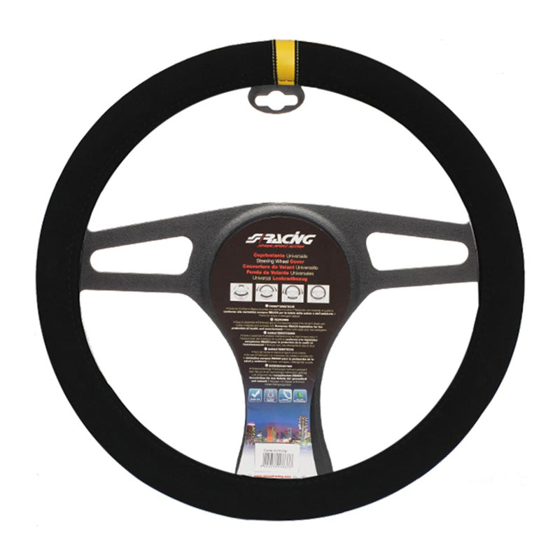 Simoni Racing, Rattskydd Carrera Look - Svart mikrofiber med gul rand - 37-39cm