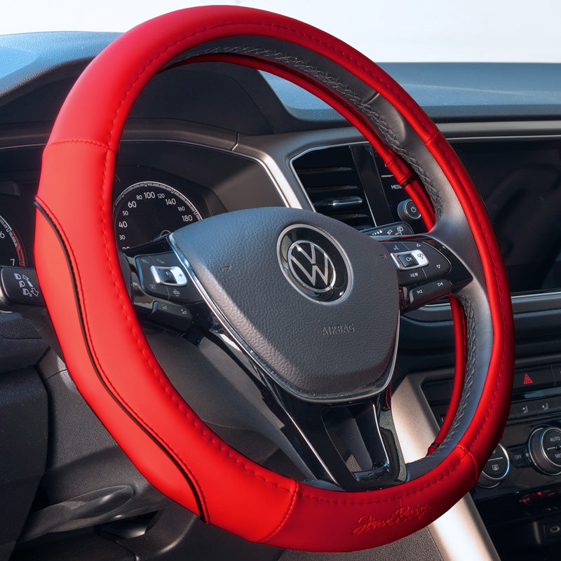 Ge din ratt en elegant och funktionell touch med Simoni Racings rattöverdrag i rött ekoläder. Detta skydd skyddar inte bara din ratt från slitage, utan förbättrar också komforten och greppet, vilket gör din körupplevelse mer njutbar. Välj Simoni Racing för att lägga till ett extra lager av design och skydd till din bils interiör, tillgängligt på Carlab.dk.