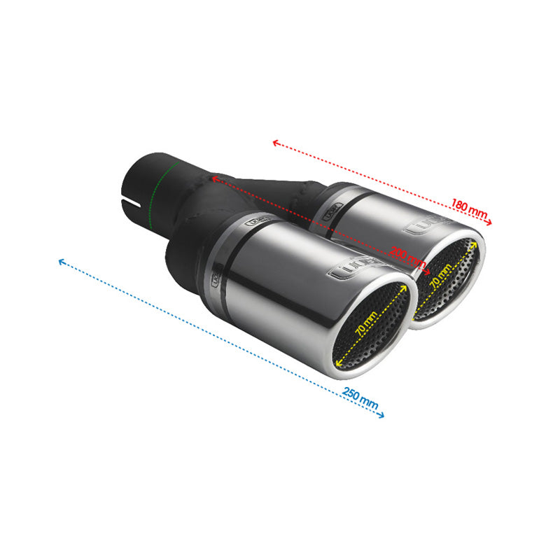 Ulter Sport, Ändrör - Dubbel rund Ø70mm RS - Längd 200mm - Installation ->50mm - Inox