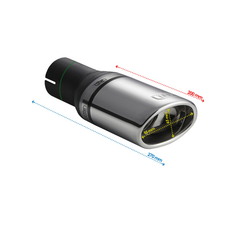Ulter Sport, Pipe Tail - Oval 95x65mm Sned - Längd 200mm - Installation ->50mm - Inox