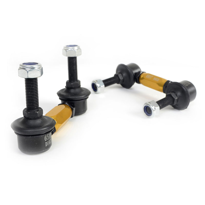 Whitelines justerbara stabilisatorlänkar är tillverkade med högkvalitativa, lätta komponenter för att säkerställa optimal prestanda. Dessa länkar eliminerar förspänning under installationen och maximerar effekten av stabilisatorstången, vilket resulterar i förbättrat grepp och bättre hantering.