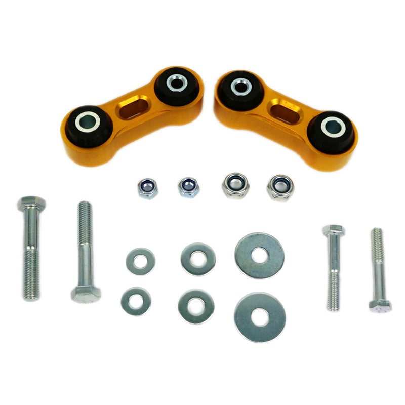 Satsen använder en höghållfast extruderad legeringslänk utrustad med syntetiska elastomerbussningar med låg efterlevnad. Kritiska komponenter har uppgraderats till hög hållfasthet för att klara de ökade belastningarna. Resultatet är en mer exakt och direkt rollkontroll med upp till 25 % effektivare stavhastighet vid lägre hjulavvikelser. Detta betyder inte nödvändigtvis en total ökning av din spöhastighet, utan snarare en snabbare effekt som ger en mer responsiv åktur tidigare i rörelsen. Länkformen och buskfästena är designade för att tillåta maximal svängbar artikulation, vilket säkerställer full fjädringsrörelse under vertikal belastning.
